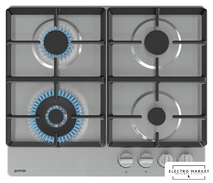 газовая на 4 конфорки, эмалированная сталь, мощность: 8300 Вт, автоматический электроподжиг, газ-контроль, решетки: чугун, независимая установка, размеры (ШхГ): 59x52 см