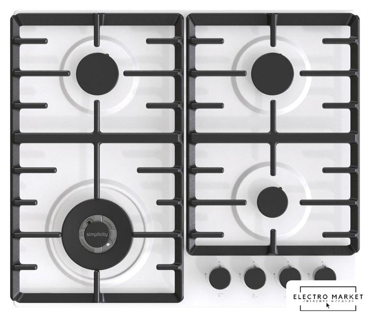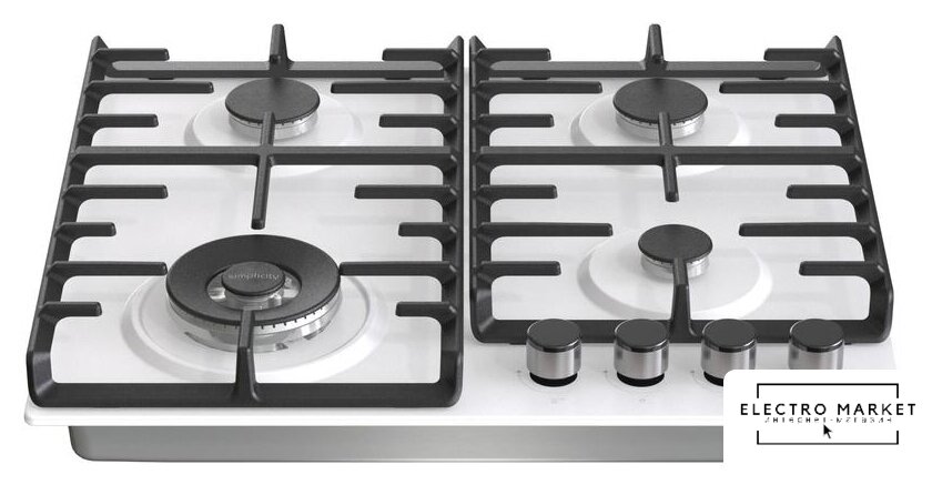 газовая на 4 конфорки, закаленное стекло, мощность: 7650 Вт, автоматический электроподжиг, газ-контроль, решетки: чугун, независимая установка, размеры (ШхГ): 58.5x51 см