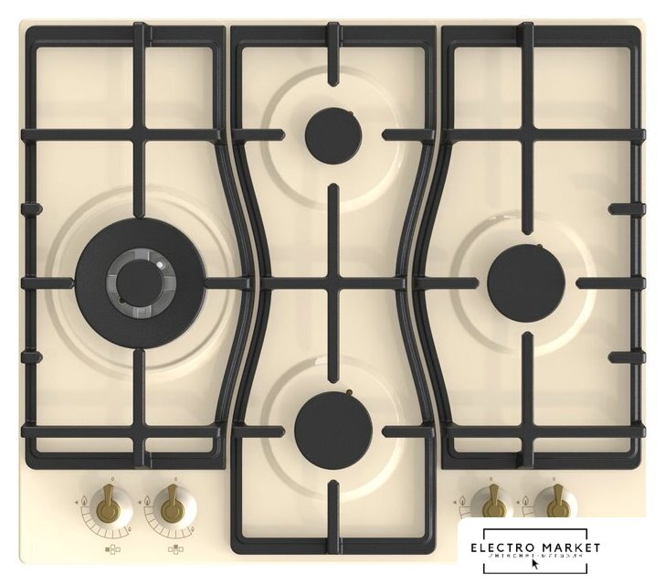газовая на 4 конфорки, закаленное стекло, мощность: 8600 Вт, автоматический электроподжиг, газ-контроль, решетки: чугун, независимая установка, размеры (ШхГ): 60x51 см