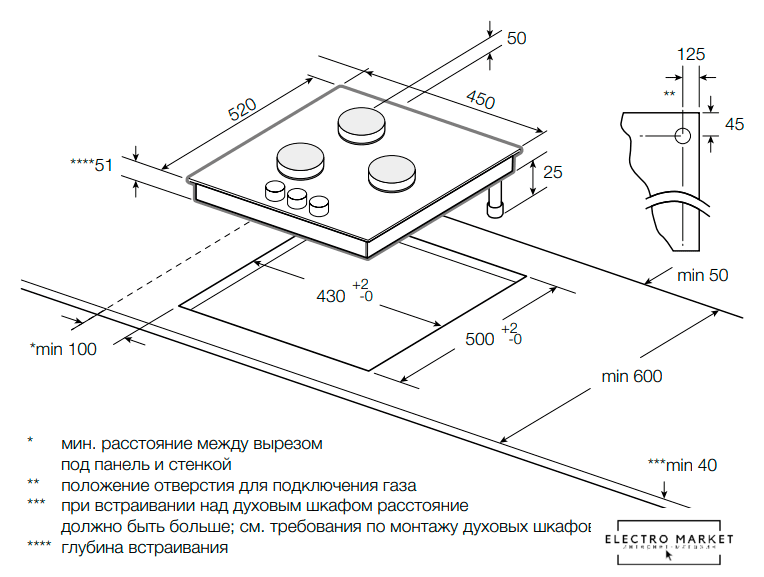 Размеры ниши для встраивания |