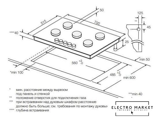 | Подробная информация о конфорках | 1 конфорка WOK 3,8 кВт• 1 мощная конфорка 2,6 кВт• 2 стандартные конфорки 1,7 кВт• 1 экономичная конфорка 1,0 кВт |