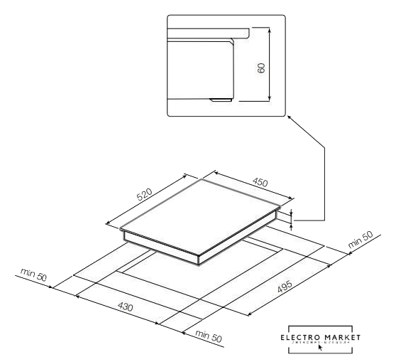 индукционная на 4 конфорки, cтеклокерамика, мощность: 7000 Вт, независимая установка, размеры (ШхГ): 59x52 см