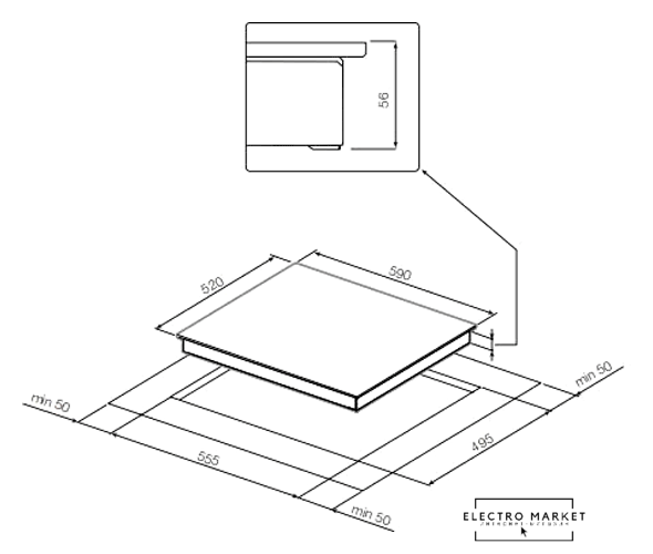 индукционная на 4 конфорки, cтеклокерамика, мощность: 7400 Вт, независимая установка, размеры (ШхГ): 59x52 см