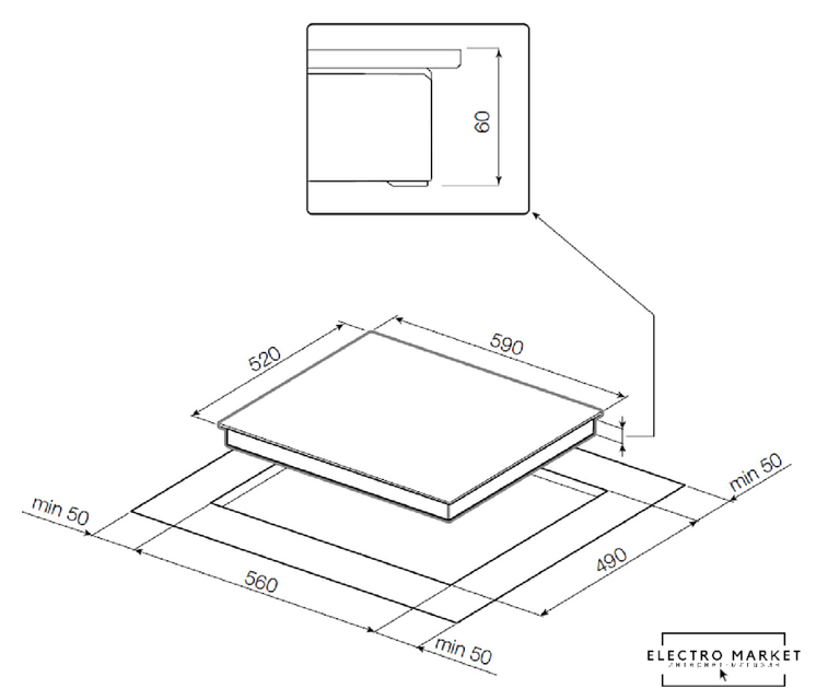 индукционная на 4 конфорки, cтеклокерамика, автоматика закипания, независимая установка, размеры (ШхГ): 59x51 см