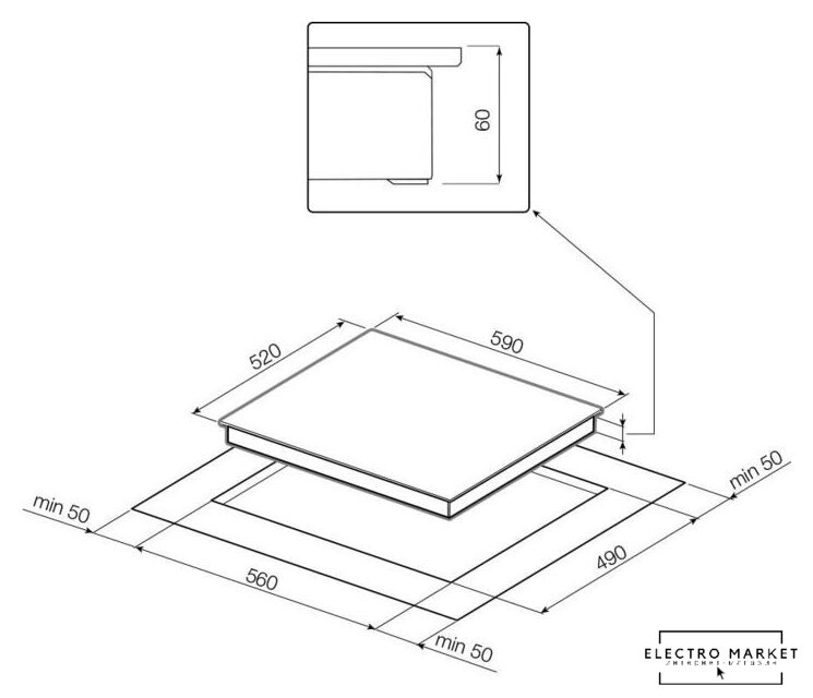 индукционная на 4 конфорки, cтеклокерамика, мощность: 6400 Вт, независимая установка, размеры (ШхГ): 59x52 см