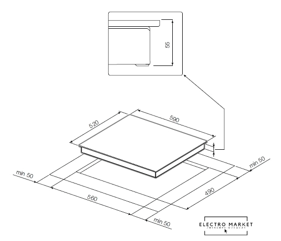 индукционная на 4 конфорки, cтеклокерамика, независимая установка, размеры (ШхГ): 59x51 см