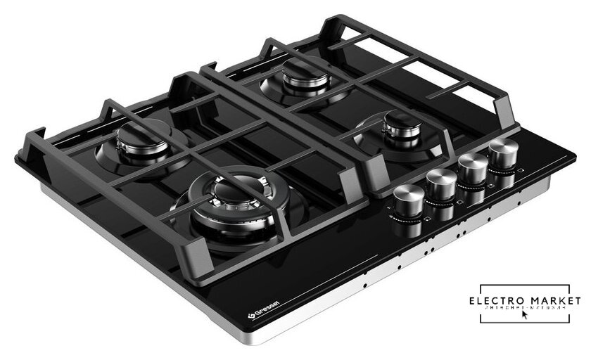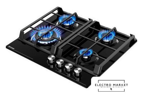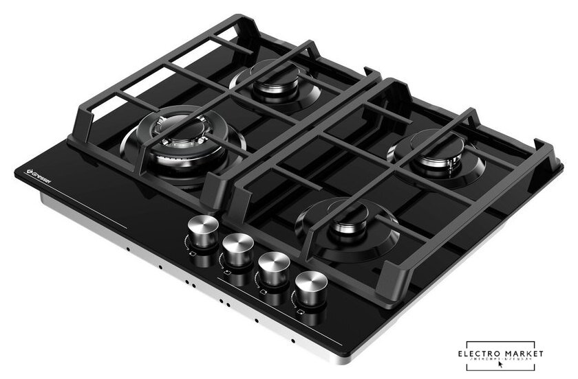 газовая на 4 конфорки, закаленное стекло, мощность: 6800 Вт, автоматический электроподжиг, газ-контроль, решетки: чугун, независимая установка, размеры (ШхГ): 59x51.5 см