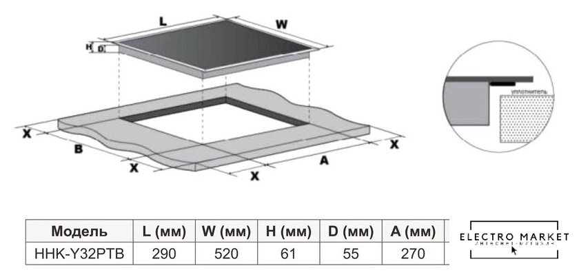 | Овальные/прямоугольные конфорки | нет |