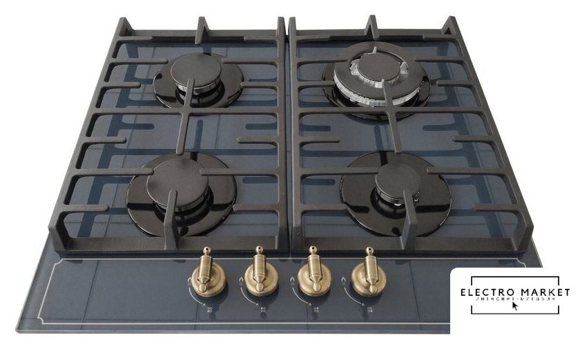 газовая на 4 конфорки, закаленное стекло, мощность: 8300 Вт, автоматический электроподжиг, газ-контроль, решетки: чугун, независимая установка, размеры (ШхГ): 58x50 см