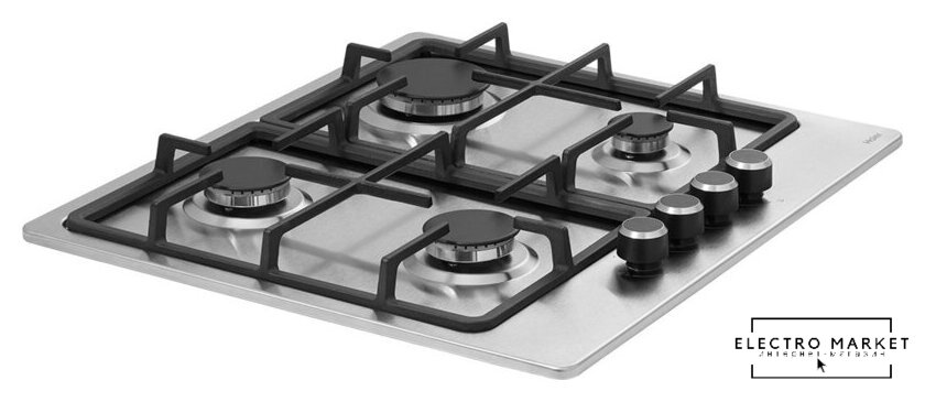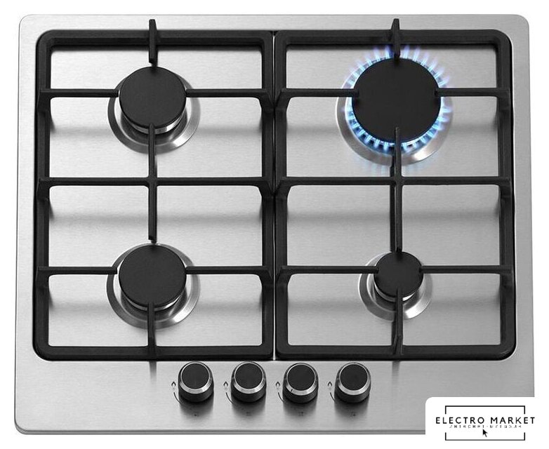 газовая на 4 конфорки, нержавеющая сталь, мощность: 8150 Вт, автоматический электроподжиг, газ-контроль, решетки: чугун, независимая установка, размеры (ШхГ): 60x52 см