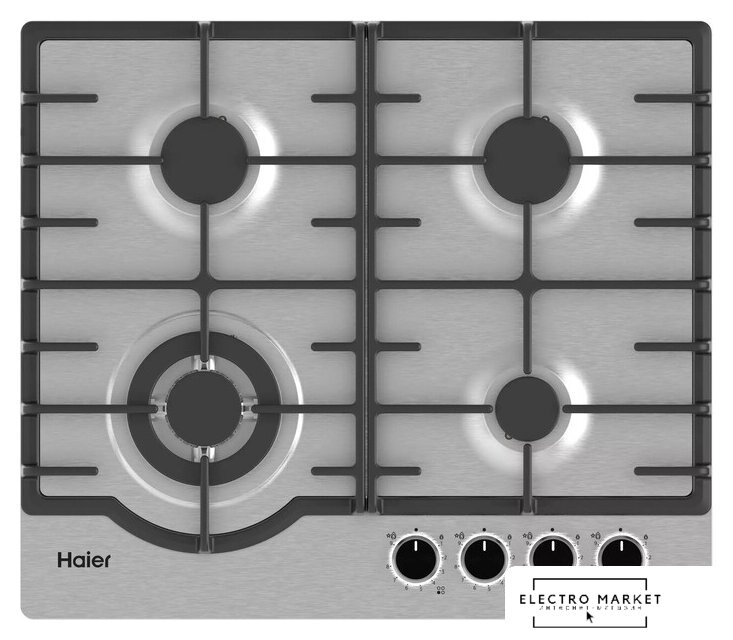 газовая на 4 конфорки, нержавеющая сталь, мощность: 8300 Вт, автоматический электроподжиг, газ-контроль, решетки: чугун, размеры (ШхГ): 58.5x55 см