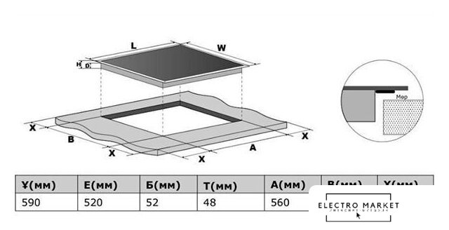HiLight на 4 конфорки, cтеклокерамика, мощность: 8300 Вт, независимая установка, размеры (ШхГ): 59.2x52.2 см