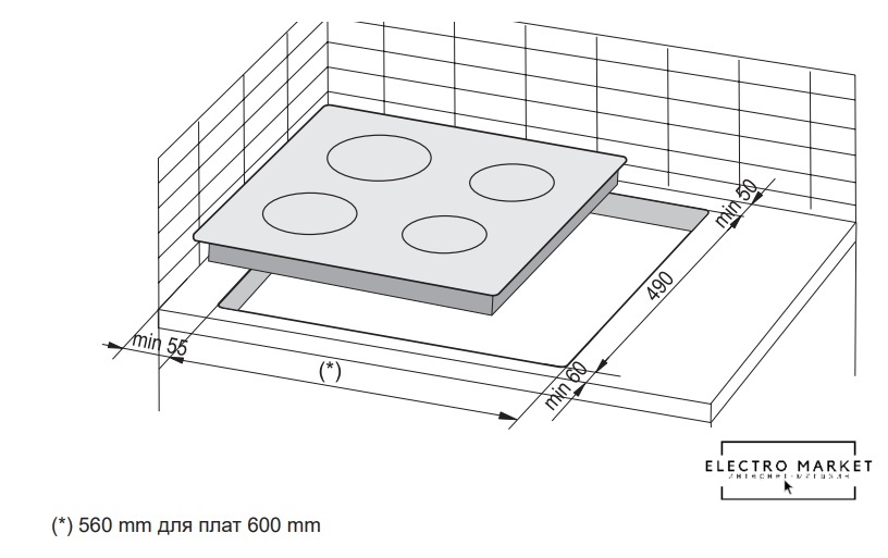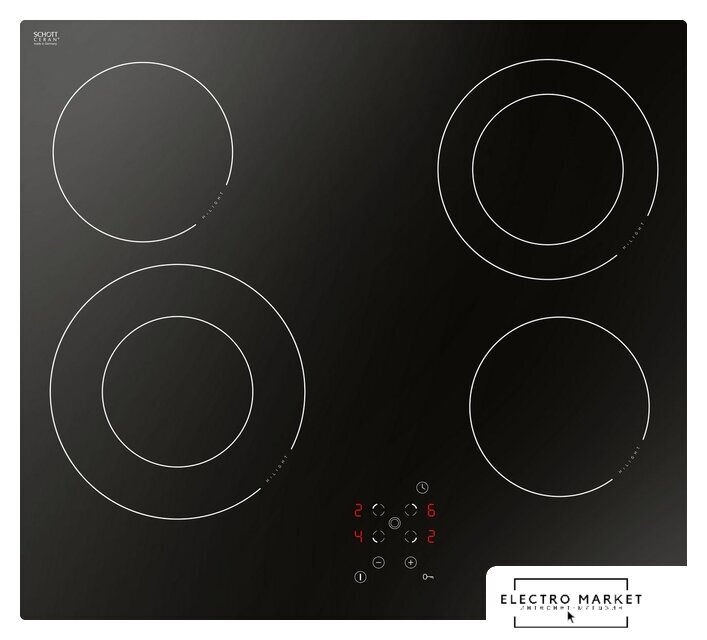 HiLight на 4 конфорки, cтеклокерамика, мощность: 6800 Вт, автоматика закипания, независимая установка, размеры (ШхГ): 57.5x50.5 см