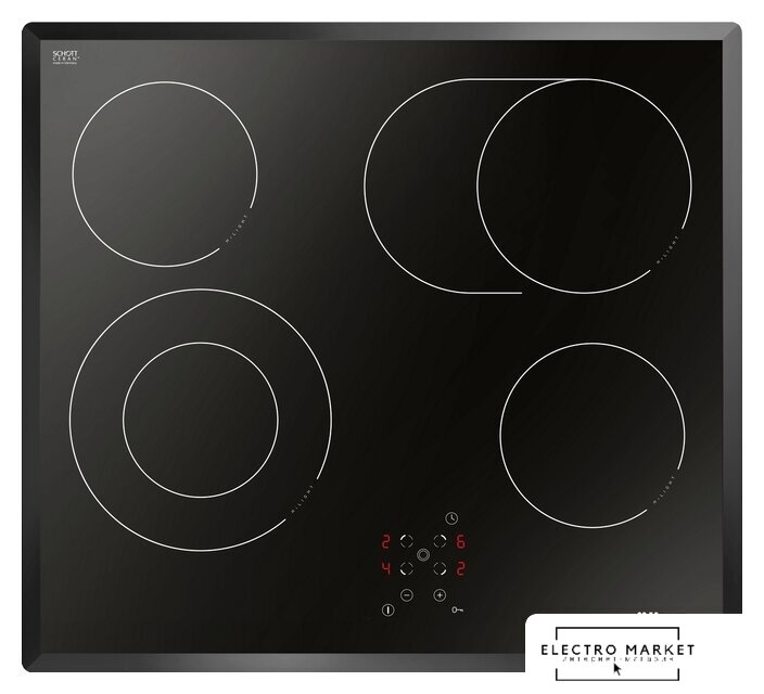 HiLight на 4 конфорки, cтеклокерамика, мощность: 6800 Вт, автоматика закипания, независимая установка, размеры (ШхГ): 57.5x50.5 см