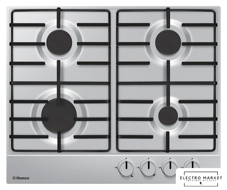 газовая на 4 конфорки, нержавеющая сталь, мощность: 7500 Вт, механический электроподжиг, газ-контроль, решетки: чугун, независимая установка, размеры (ШхГ): 59x52 см