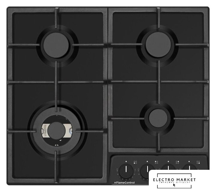 газовая на 4 конфорки, эмалированная сталь, мощность: 7900 Вт, автоматический электроподжиг, газ-контроль, решетки: чугун, независимая установка, размеры (ШхГ): 58x51 см