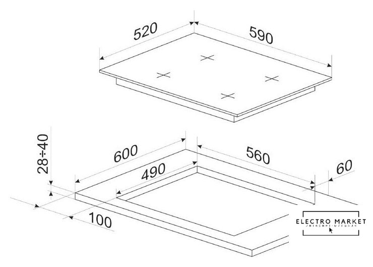 | Подробная информация о конфорках | 2800 Вт1800 Вт1800 Вт1000 Вт |