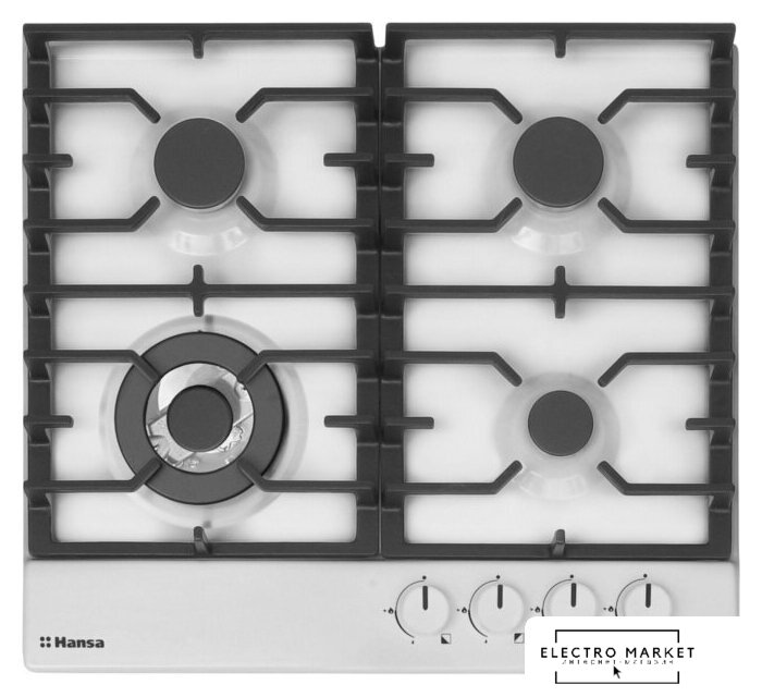 газовая на 4 конфорки, нержавеющая сталь, мощность: 8800 Вт, автоматический электроподжиг, газ-контроль, решетки: чугун, размеры (ШхГ): 59.5x51 см