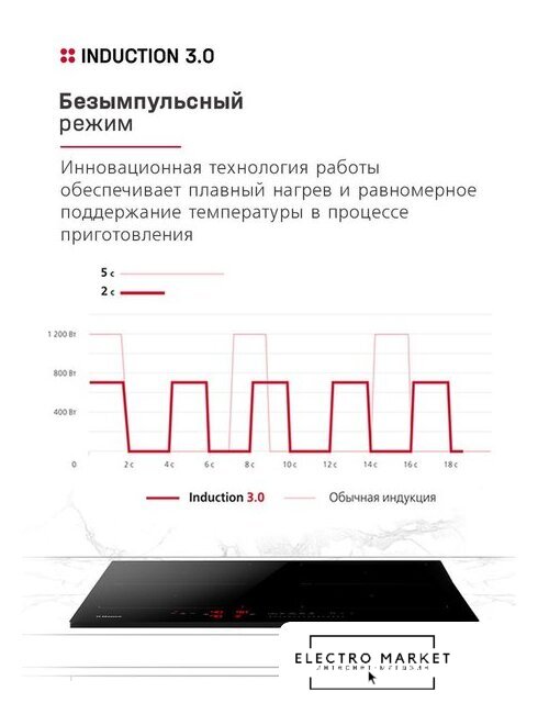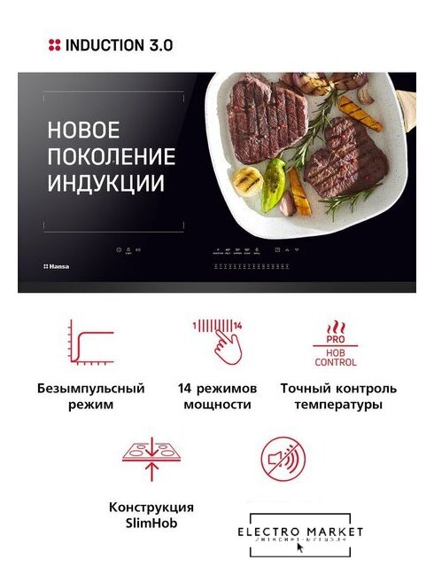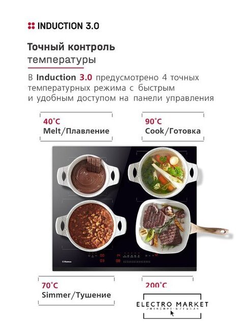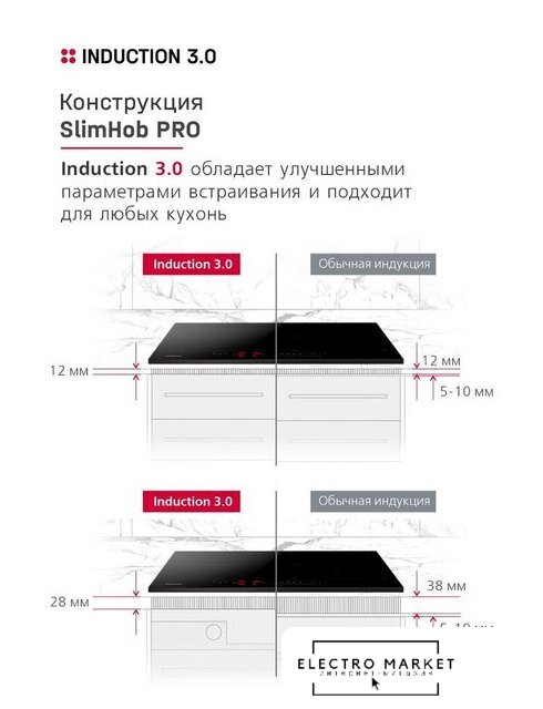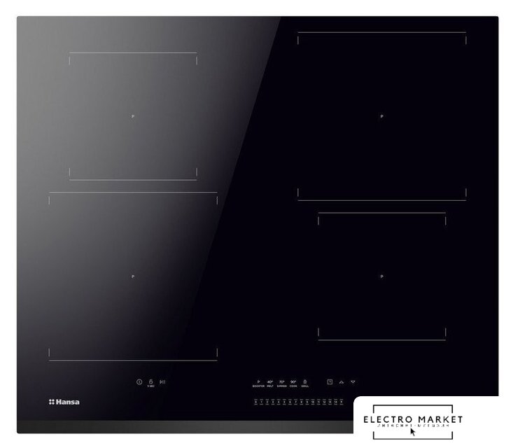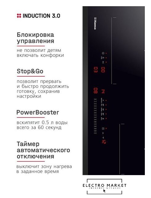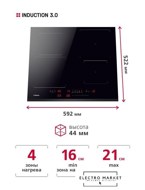 индукционная на 4 конфорки, cтеклокерамика, независимая установка, размеры (ШхГ): 59x52 см
