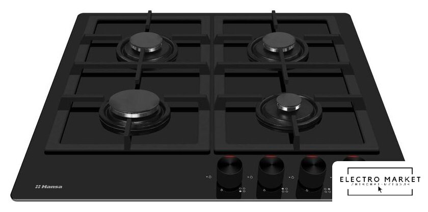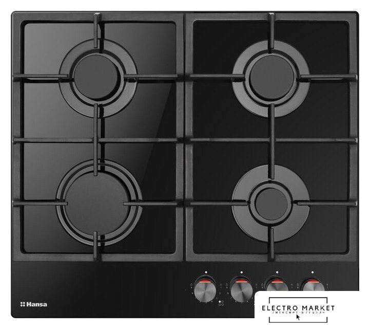 газовая на 4 конфорки, закаленное стекло, мощность: 8000 Вт, автоматический электроподжиг, газ-контроль, решетки: чугун, размеры (ШхГ): 58.4x51 см