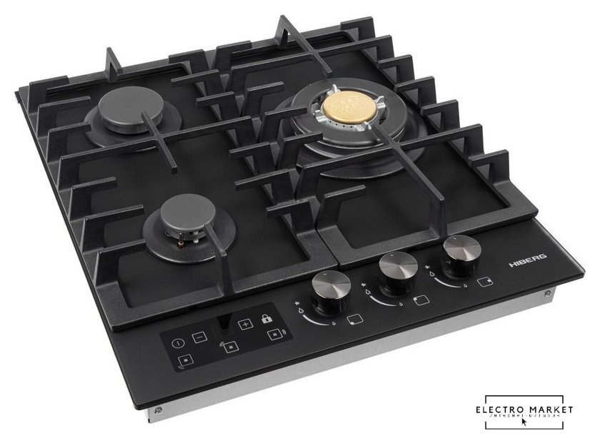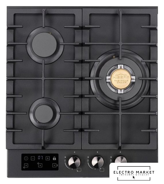 | Подробная информация о конфорках | Одна конфорка WOK с тройным рядом пламени, мощностью 3.4 кВт, две стандартные газовые конфорки. |