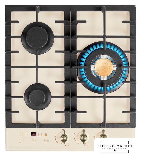 газовая на 4 конфорки, закаленное стекло, мощность: 8300 Вт, автоматический электроподжиг, газ-контроль, решетки: чугун, независимая установка