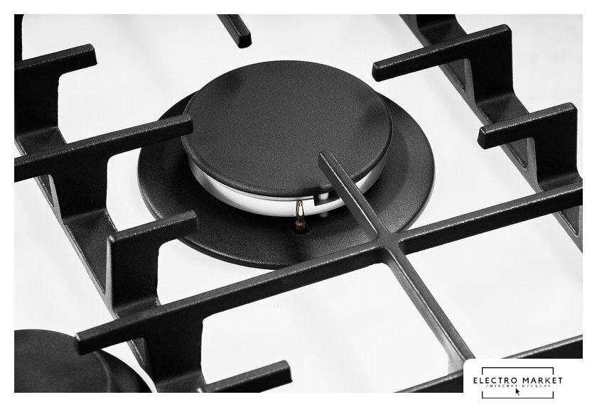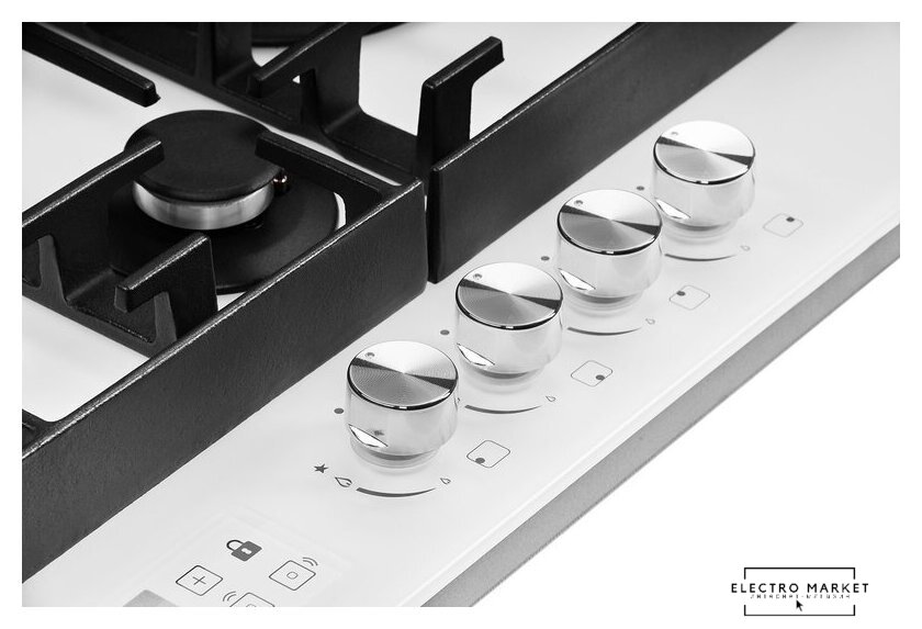 газовая на 4 конфорки, закаленное стекло, мощность: 7650 Вт, автоматический электроподжиг, газ-контроль, решетки: чугун, размеры (ШхГ): 58x51 см