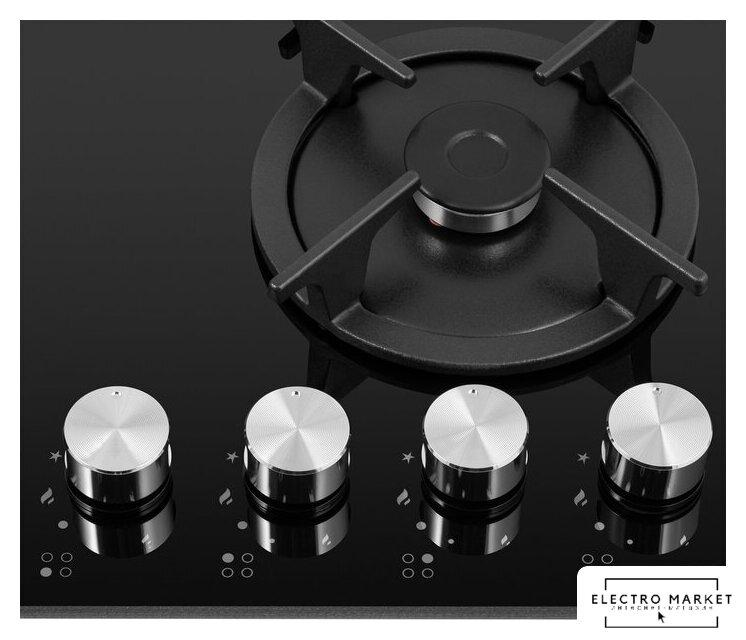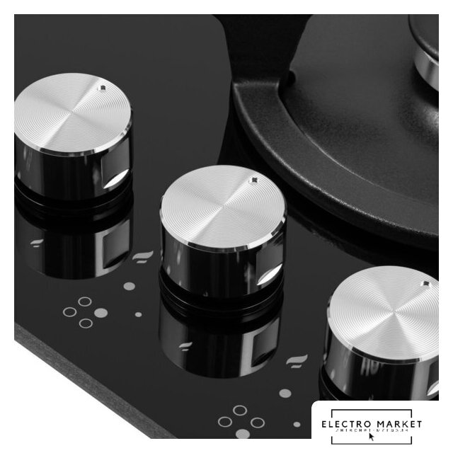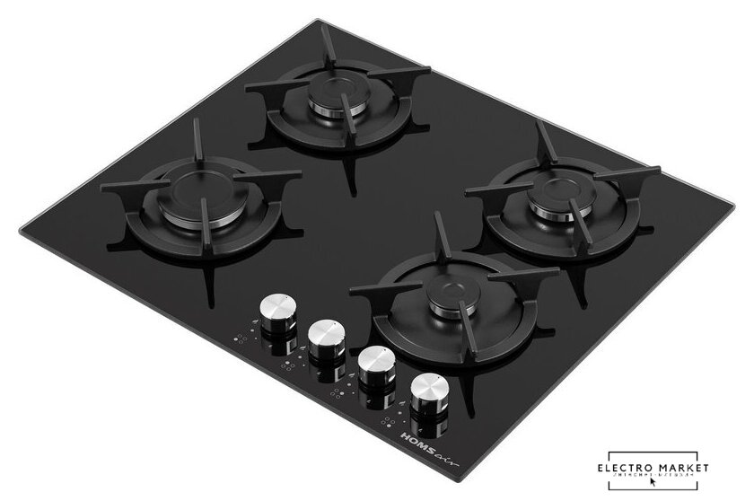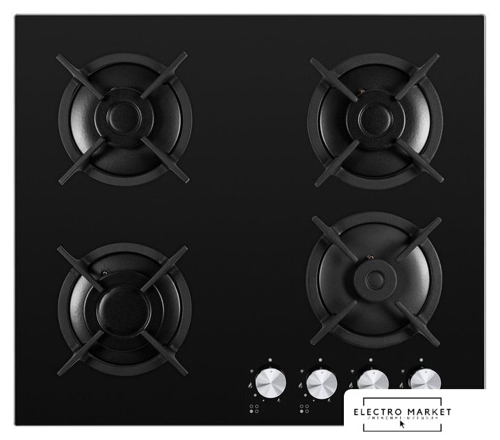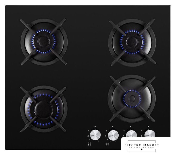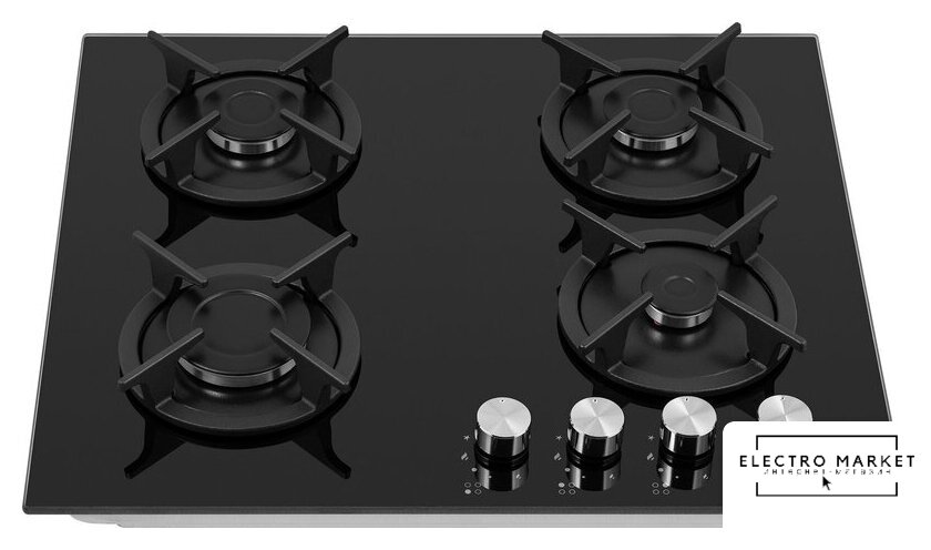 газовая на 4 конфорки, закаленное стекло, мощность: 9300 Вт, автоматический электроподжиг, газ-контроль, решетки: чугун, независимая установка, размеры (ШхГ): 59x51.5 см