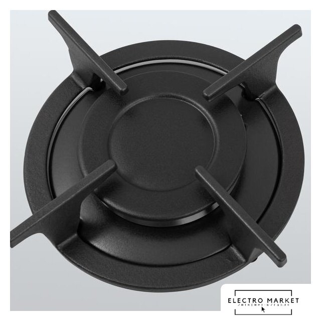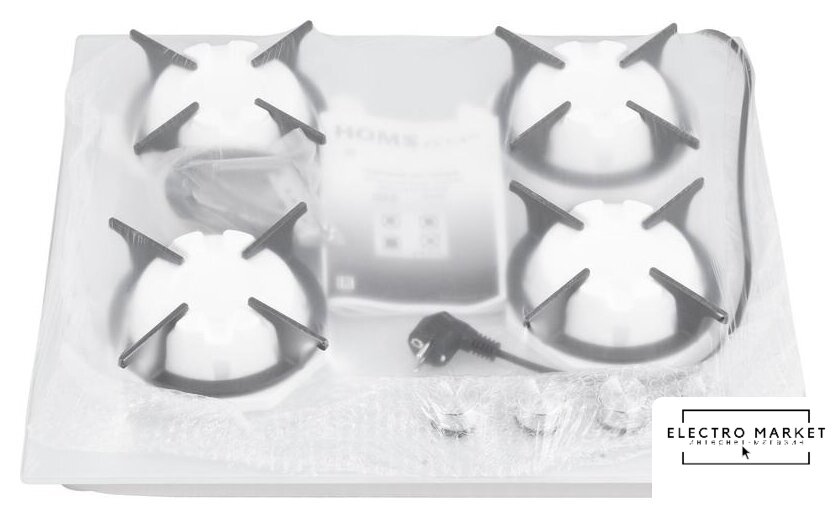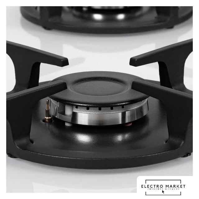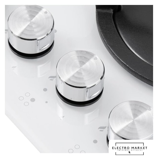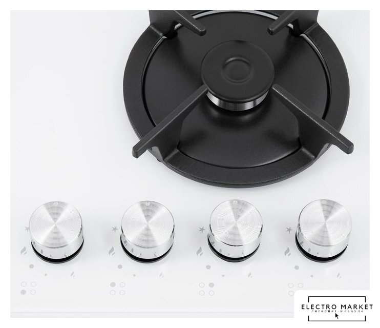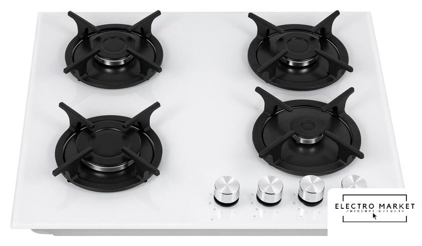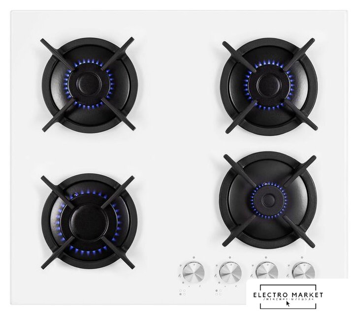 газовая на 4 конфорки, закаленное стекло, мощность: 7400 Вт, автоматический электроподжиг, газ-контроль, решетки: чугун