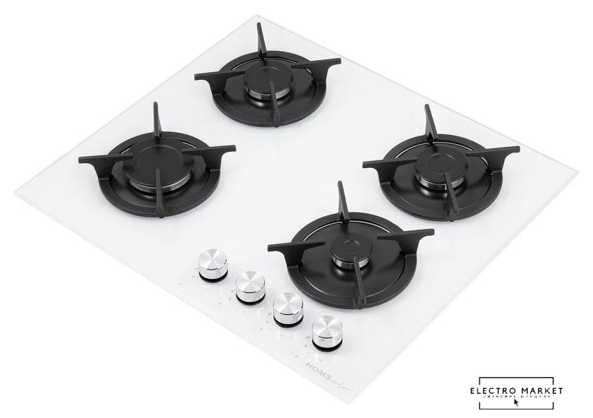 газовая на 4 конфорки, закаленное стекло, мощность: 7800 Вт, автоматический электроподжиг, газ-контроль, решетки: чугун, независимая установка, размеры (ШхГ): 59x52 см