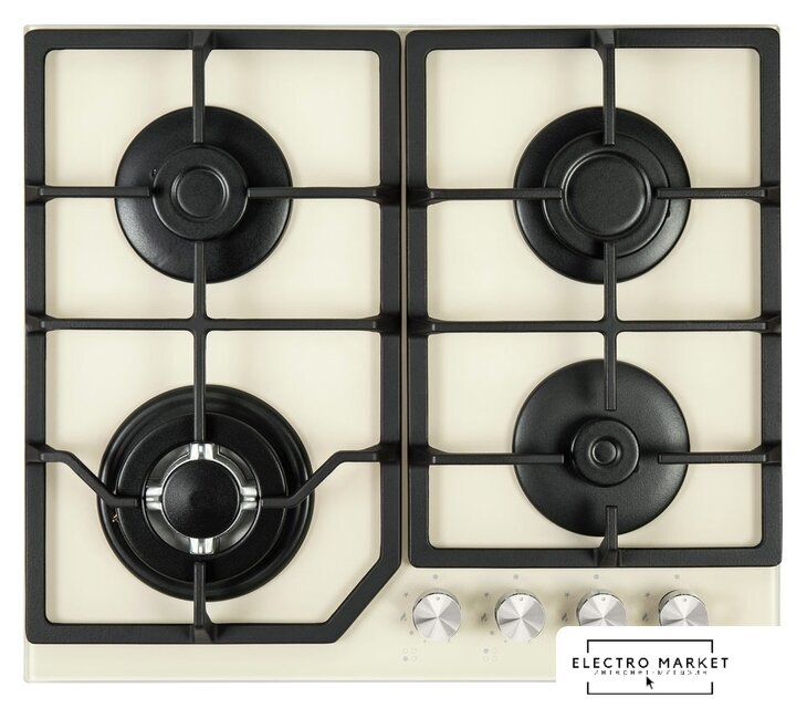 газовая на 4 конфорки, закаленное стекло, мощность: 7200 Вт, автоматический электроподжиг, газ-контроль, решетки: чугун, независимая установка, размеры (ШхГ): 59x51.5 см