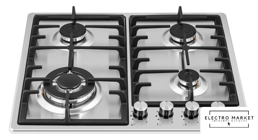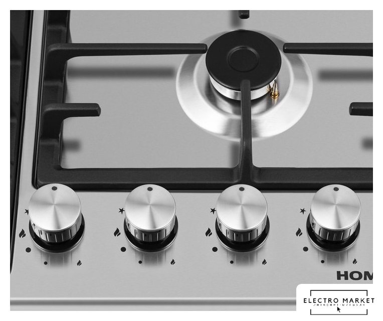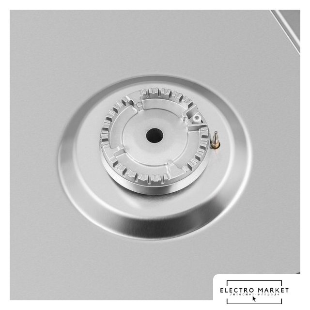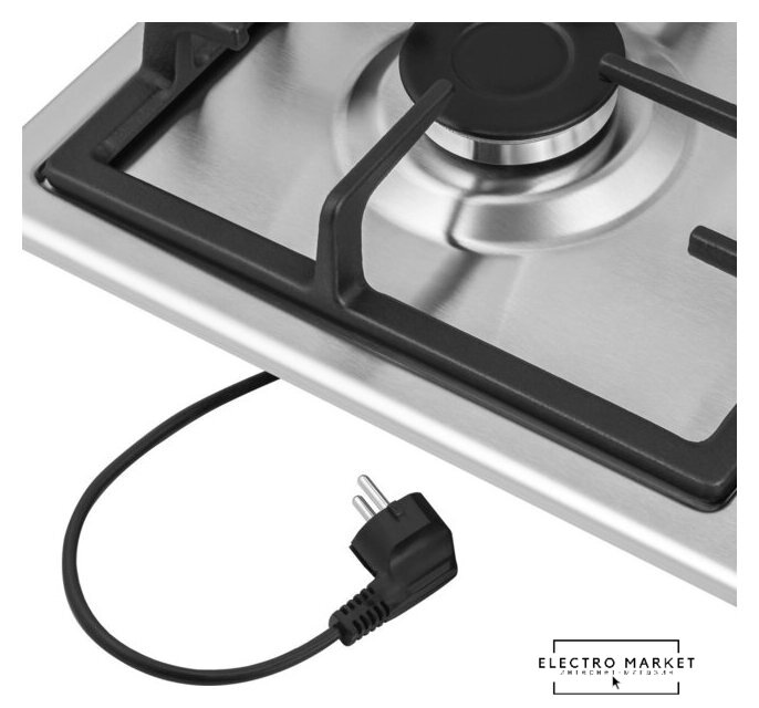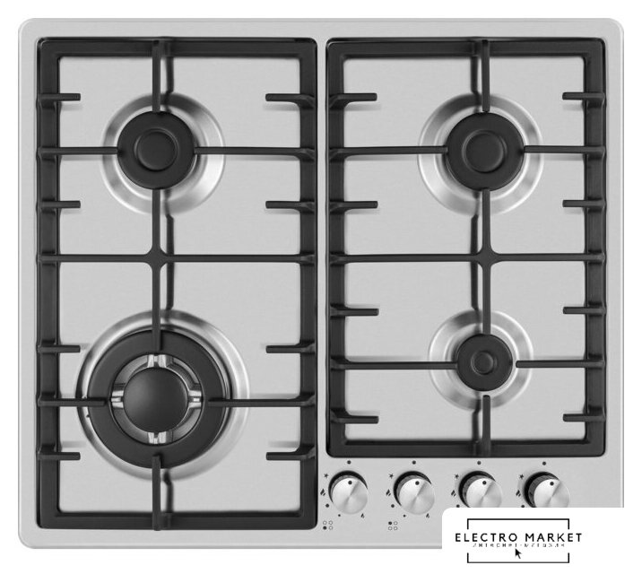 газовая на 4 конфорки, закаленное стекло, мощность: 7400 Вт, автоматический электроподжиг, газ-контроль, решетки: чугун