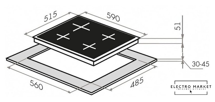 газовая на 4 конфорки, закаленное стекло, мощность: 7800 Вт, автоматический электроподжиг, газ-контроль, решетки: чугун, независимая установка, размеры (ШхГ): 59x52 см