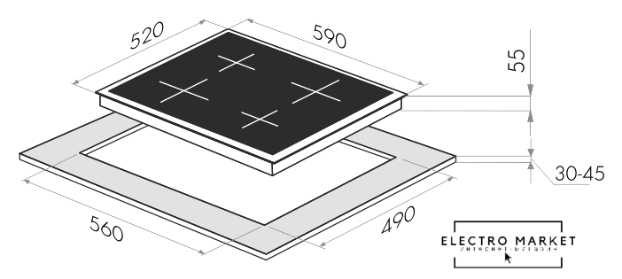 HiLight на 4 конфорки, cтеклокерамика, мощность: 6000 Вт, независимая установка, размеры (ШхГ): 59.5x53 см