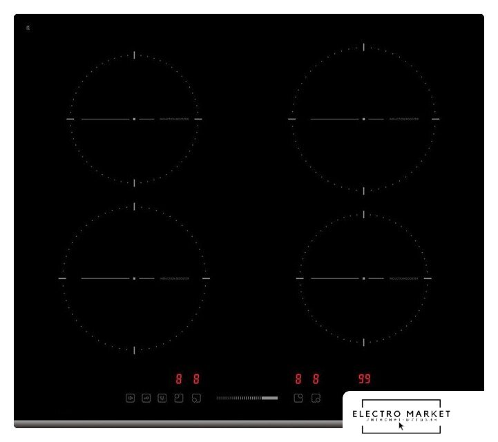 индукционная на 4 конфорки, cтеклокерамика, мощность: 7200 Вт, независимая установка, размеры (ШхГ): 59x52 см