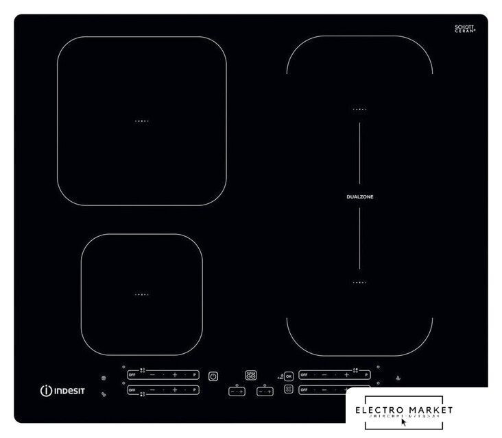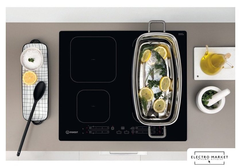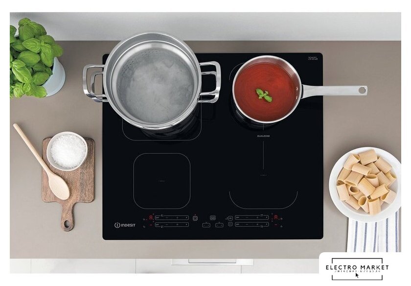 индукционная на 4 конфорки, cтеклокерамика, мощность: 7400 Вт, автоматика закипания, независимая установка, размеры (ШхГ): 59.5x52.5 см