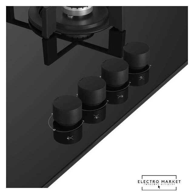 газовая на 4 конфорки, закаленное стекло, автоматический электроподжиг, газ-контроль, решетки: чугун, независимая установка