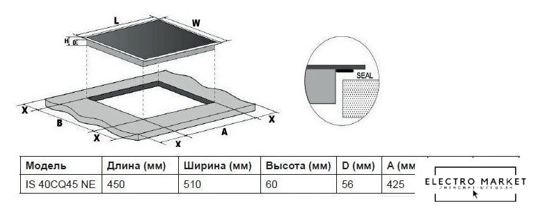 индукционная на 4 конфорки, cтеклокерамика, мощность: 7000 Вт, независимая установка, размеры (ШхГ): 59x52 см