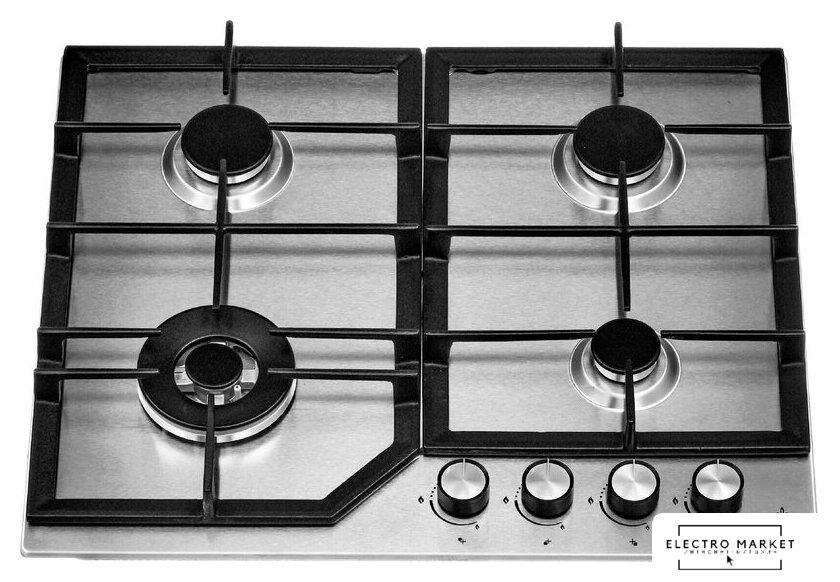 газовая на 4 конфорки, закаленное стекло, мощность: 9250 Вт, газ-контроль, решетки: чугун, независимая установка, размеры (ШхГ): 60x51 см