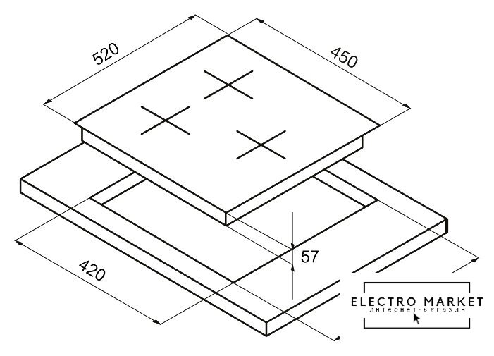 Подробная информация о конфорках | Маленькая конфорка 1кВт;Средняя конфорка 1.75 кВт;ВОК-конфорка 3.6 кВт. |