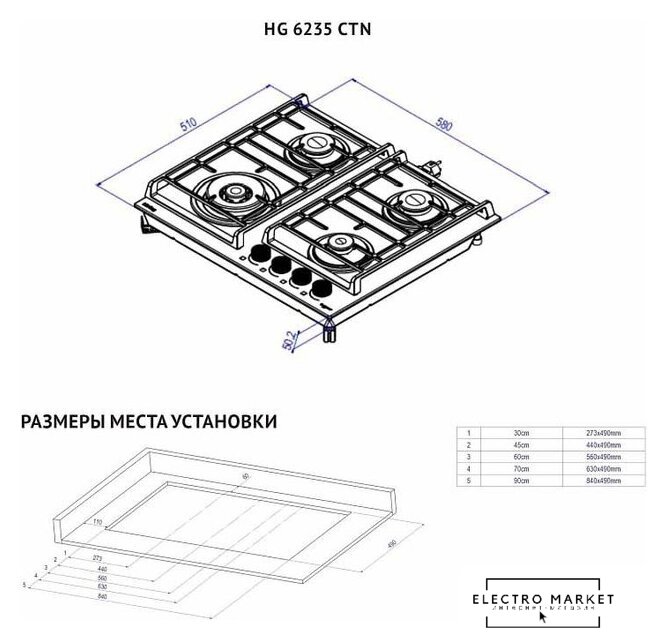 Тип варочной поверхности | газовая |