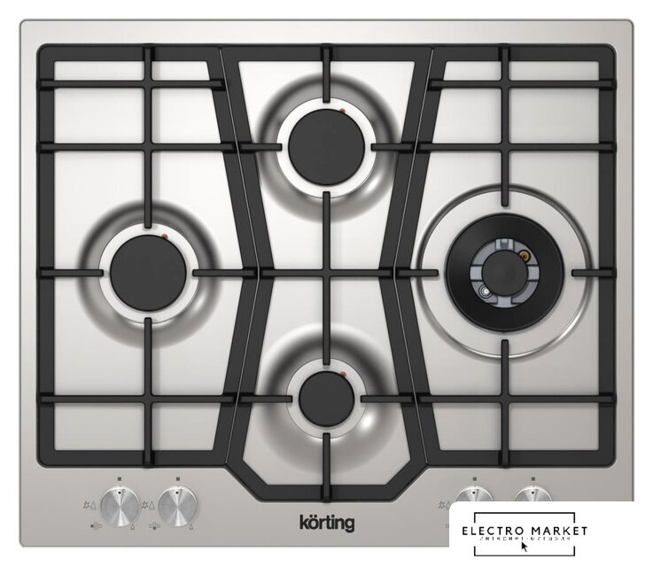 газовая на 4 конфорки, нержавеющая сталь, мощность: 8000 Вт, автоматический электроподжиг, газ-контроль, решетки: чугун, независимая установка, размеры (ШхГ): 58.2x52 см