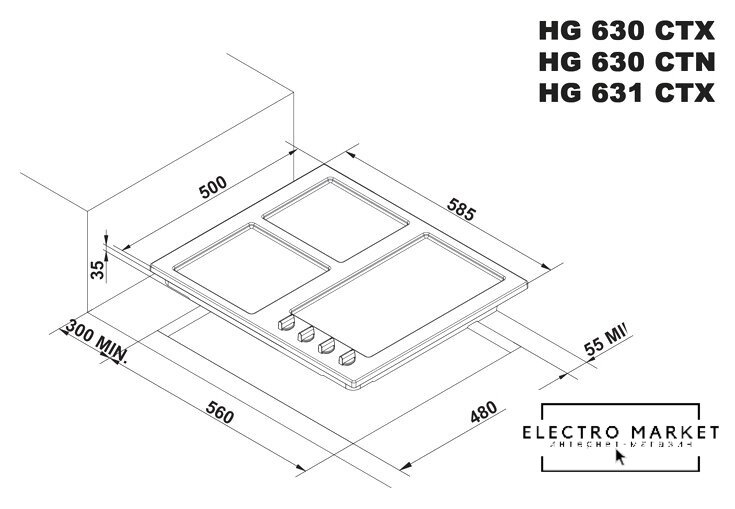 газовая на 4 конфорки, закаленное стекло, мощность: 8800 Вт, автоматический электроподжиг, газ-контроль, решетки: чугун, независимая установка, размеры (ШхГ): 61x51 см