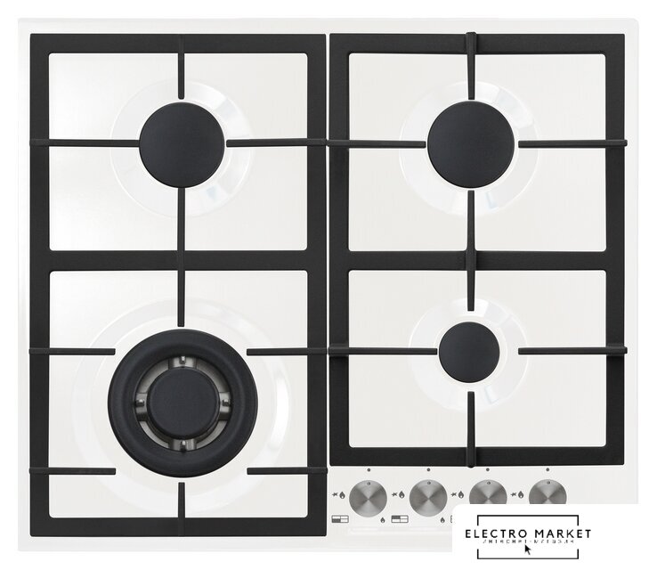 газовая на 4 конфорки, эмалированная сталь, мощность: 8300 Вт, автоматический электроподжиг, газ-контроль, решетки: чугун, независимая установка, размеры (ШхГ): 59x52 см