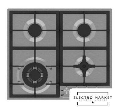 газовая на 4 конфорки, нержавеющая сталь, мощность: 10100 Вт, автоматический электроподжиг, газ-контроль, решетки: чугун, размеры (ШхГ): 60x51 см
