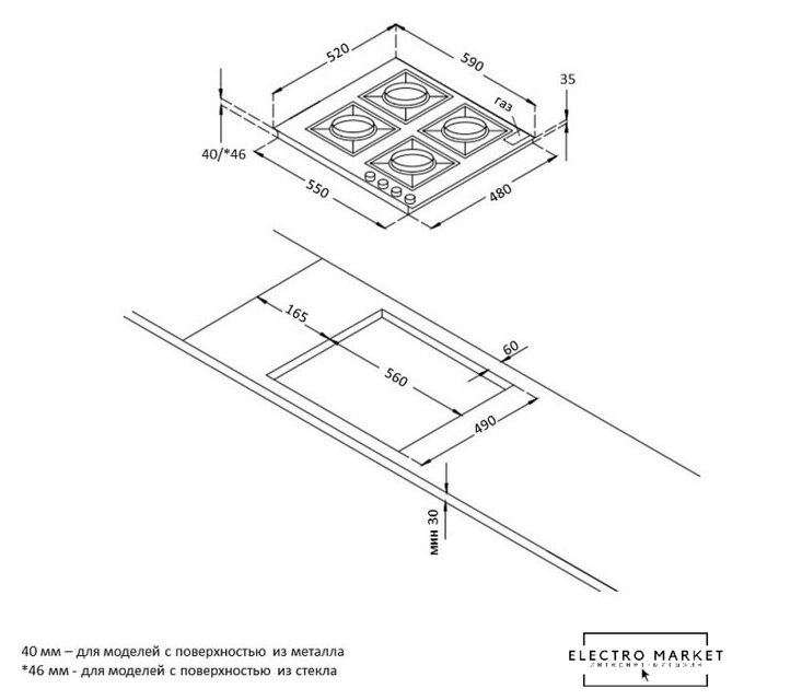 | Овальные/прямоугольные конфорки | нет |