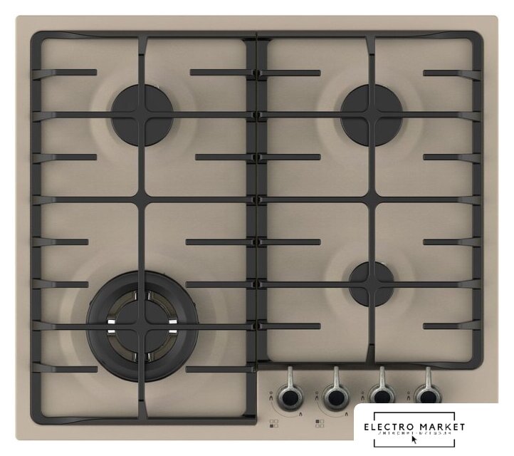 газовая на 4 конфорки, эмалированная сталь, мощность: 8300 Вт, автоматический электроподжиг, газ-контроль, решетки: чугун, размеры (ШхГ): 58.5x50 см