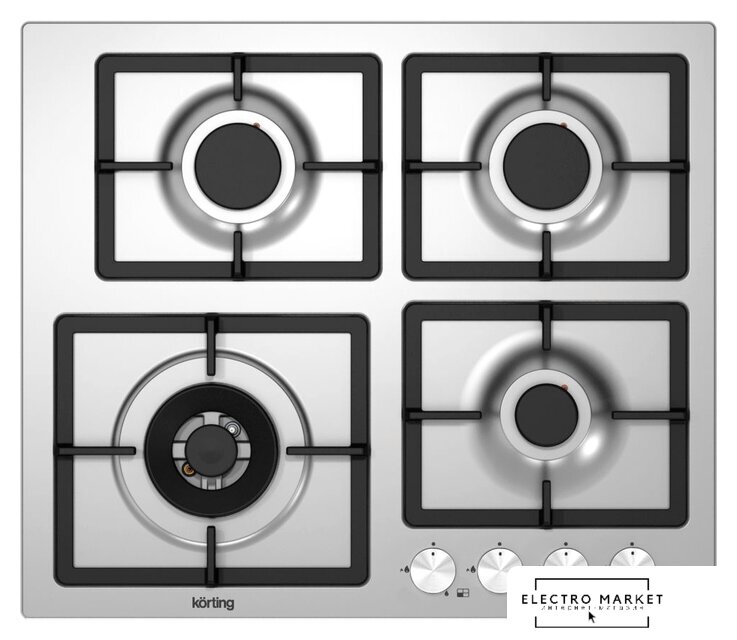 газовая на 4 конфорки, нержавеющая сталь, мощность: 8300 Вт, автоматический электроподжиг, газ-контроль, решетки: чугун, независимая установка, размеры (ШхГ): 59x52 см