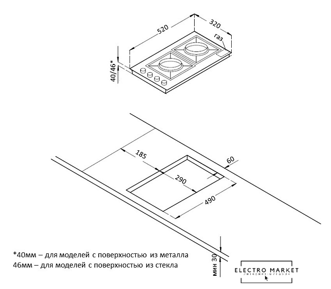Овальные/прямоугольные конфорки | нет |