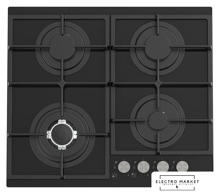 газовая на 4 конфорки, закаленное стекло, мощность: 8150 Вт, автоматический электроподжиг, газ-контроль, решетки: чугун, независимая установка, размеры (ШхГ): 58.5x51 см